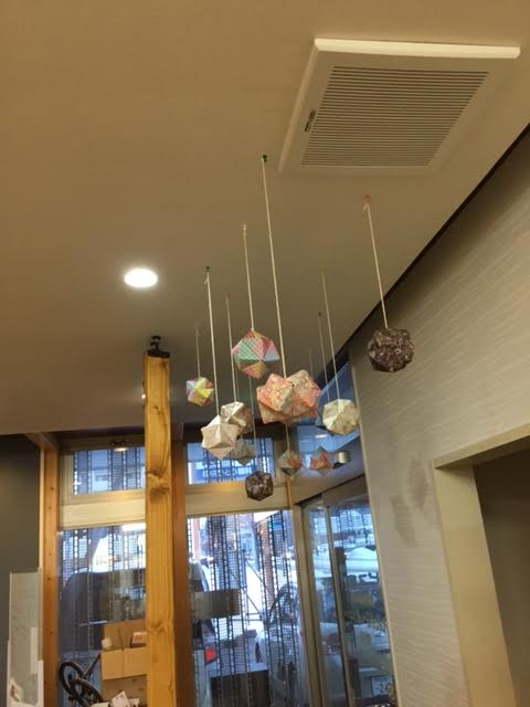 利用者さんが折り紙で飾りを作り飾り付け☆